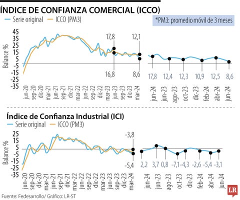 Confianza industrial creció en junio y la comercial cayó casi cuatro puntos mensuales